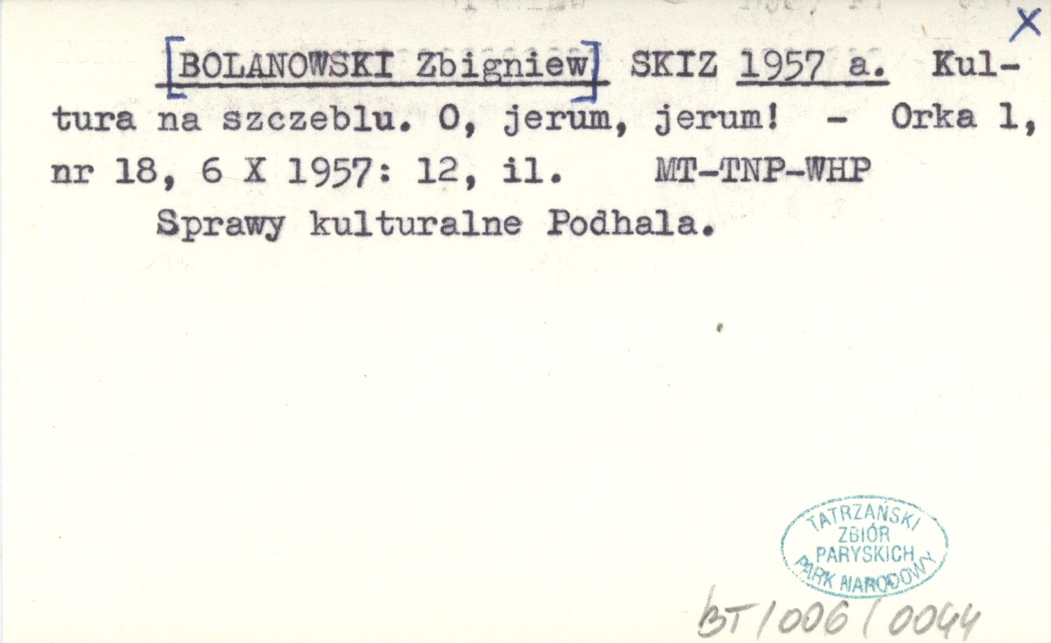 SKIZ [BOLANOWSKI Zbigniew] 1957 a Kultura na szczeblu. O, jerum, jerum!