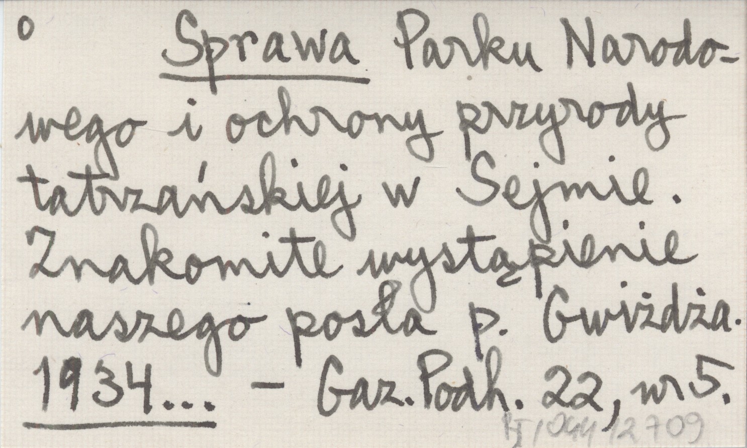 Sprawa Parku Narodowego i ochrony przyrody tatrzańskiej w Sejmie. Znakomite wystąpienie naszego posła p. Gwiżdża. 1934...