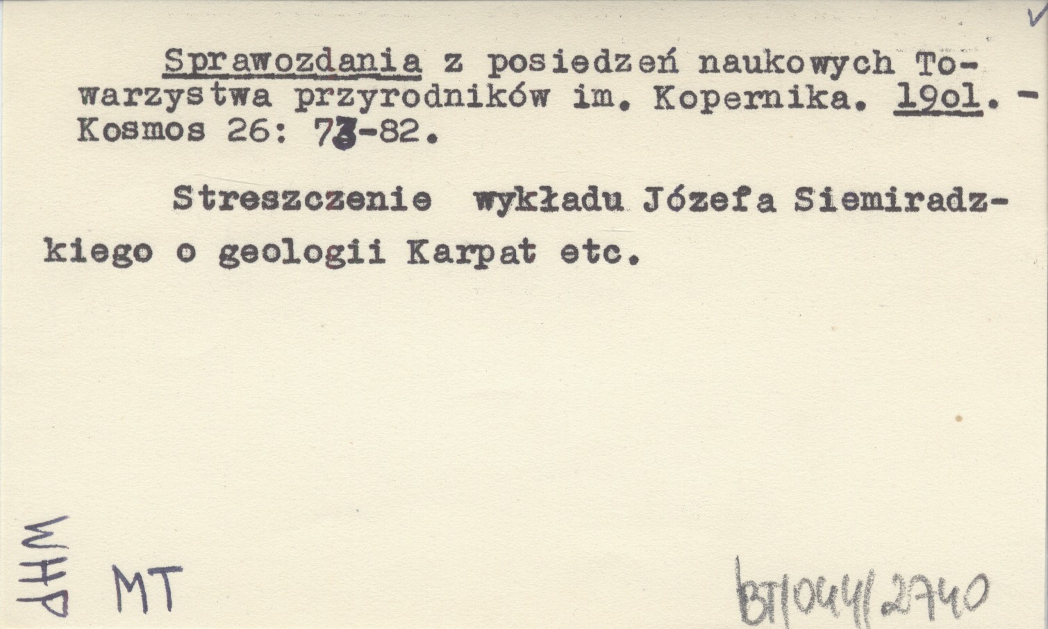 Kosmos, 26: 73-82. Streszczenie wykładu Józefa Siemiradzkiego o geologii Karpat etc.