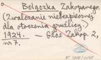 Bolączka Zakopanego. (Zwalczanie niebezpiecznej dla otoczenia gruźlicy.). 1924