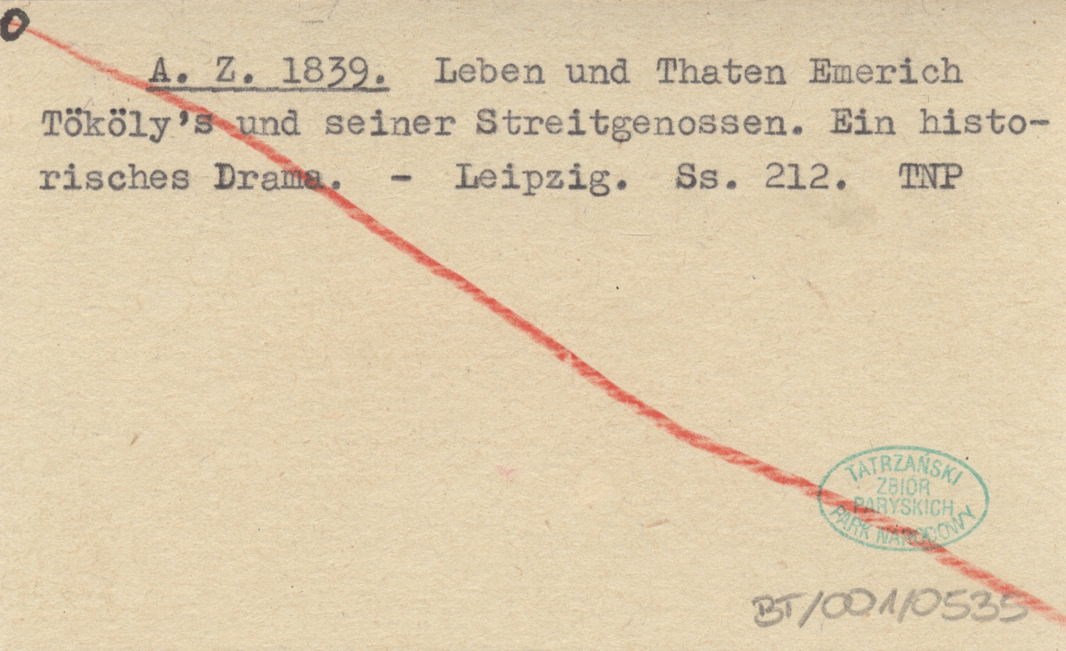 A. Z. 1839 Leben und Thaten Emerich Tököly's und seiner Streitgenossen. Ein historisches Drama.