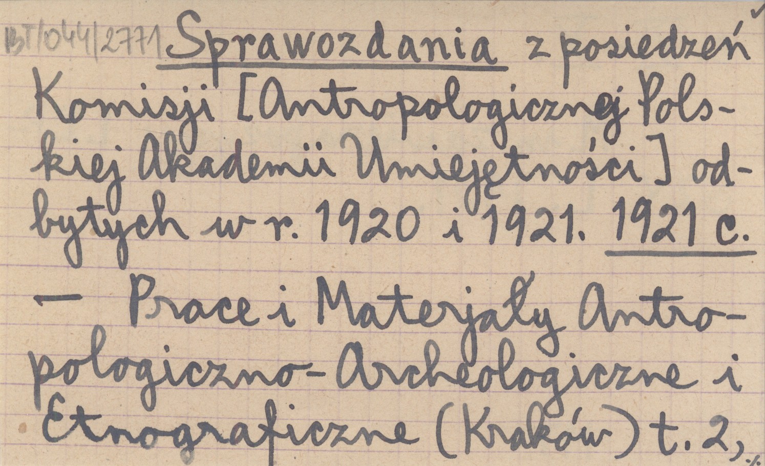 Sprawozdania z posiedzeń Komisji [Antropologicznej Polskiej Akademii Umiejętności] odbytych w r. 1920 i 1921. 1921 c