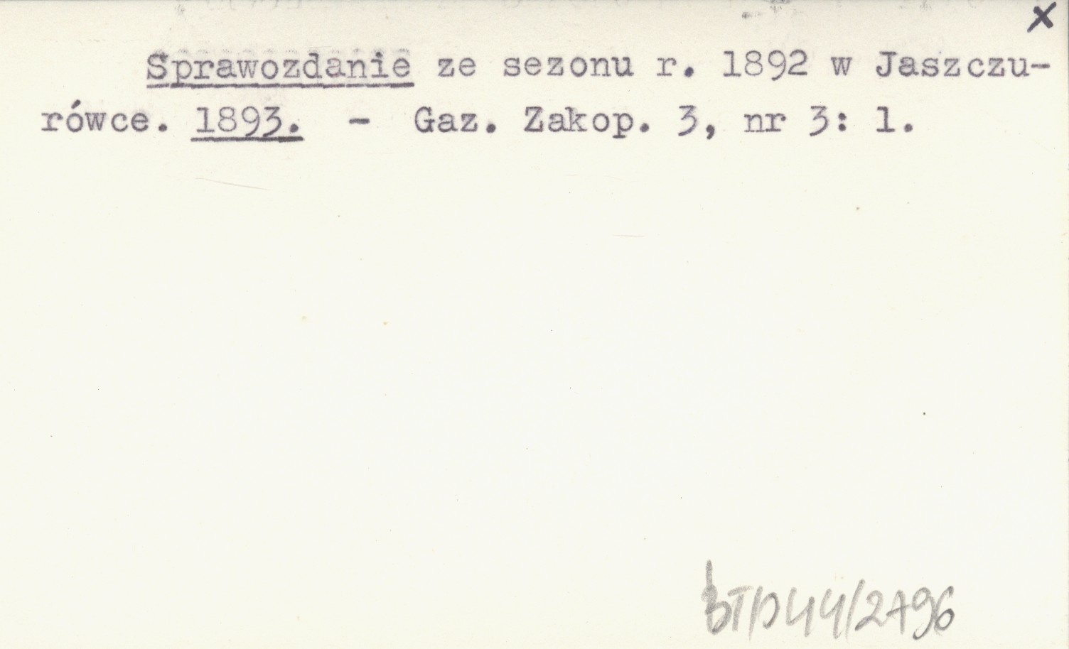 Sprawozdania ze sezonu r. 1892 w Jaszczurówce. 1893