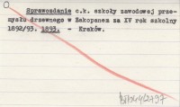 Sprawozdanie c.k. szkoły zawodowej przemysłu drzewnego w Zakopanem za XV rok szkolny 1892/93. 1893