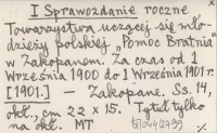 I Sprawozdanie roczne Towarzystwa uczącej się młodzieży polskiej "Pomoc Bratnia" w Zakopanem. Za czas od 1 Września 1900 do 1 Września 1901 r. [1901]