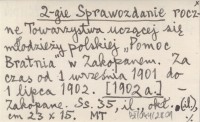 2-gie Sprawozdanie roczne Towarzystwa uczącej się młodzieży polskiej "Pomoc Bratnia" w Zakopanem. Za czas od 1 września 1901 do 1 lipca 1902. [1902 a]