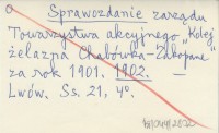 Sprawozdanie zarządu Towarzystwa akcyjnego "Kolej żelazna Chabówka-Zakopane" za rok 1901. 1902