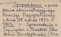 Sprawozdanie z posiedzenia administracyjnego Komisyi fizyograficznej z dnia 28 marca 1903 r. 1903