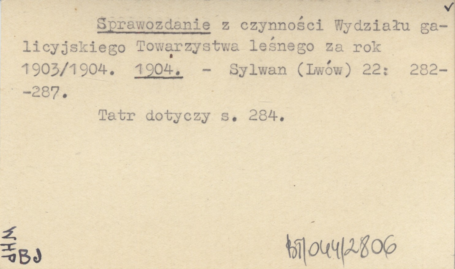Sprawozdanie z czynności Wydziału galicyjskiego Towarzystwa leśnego za rok 1903/1904. 1904