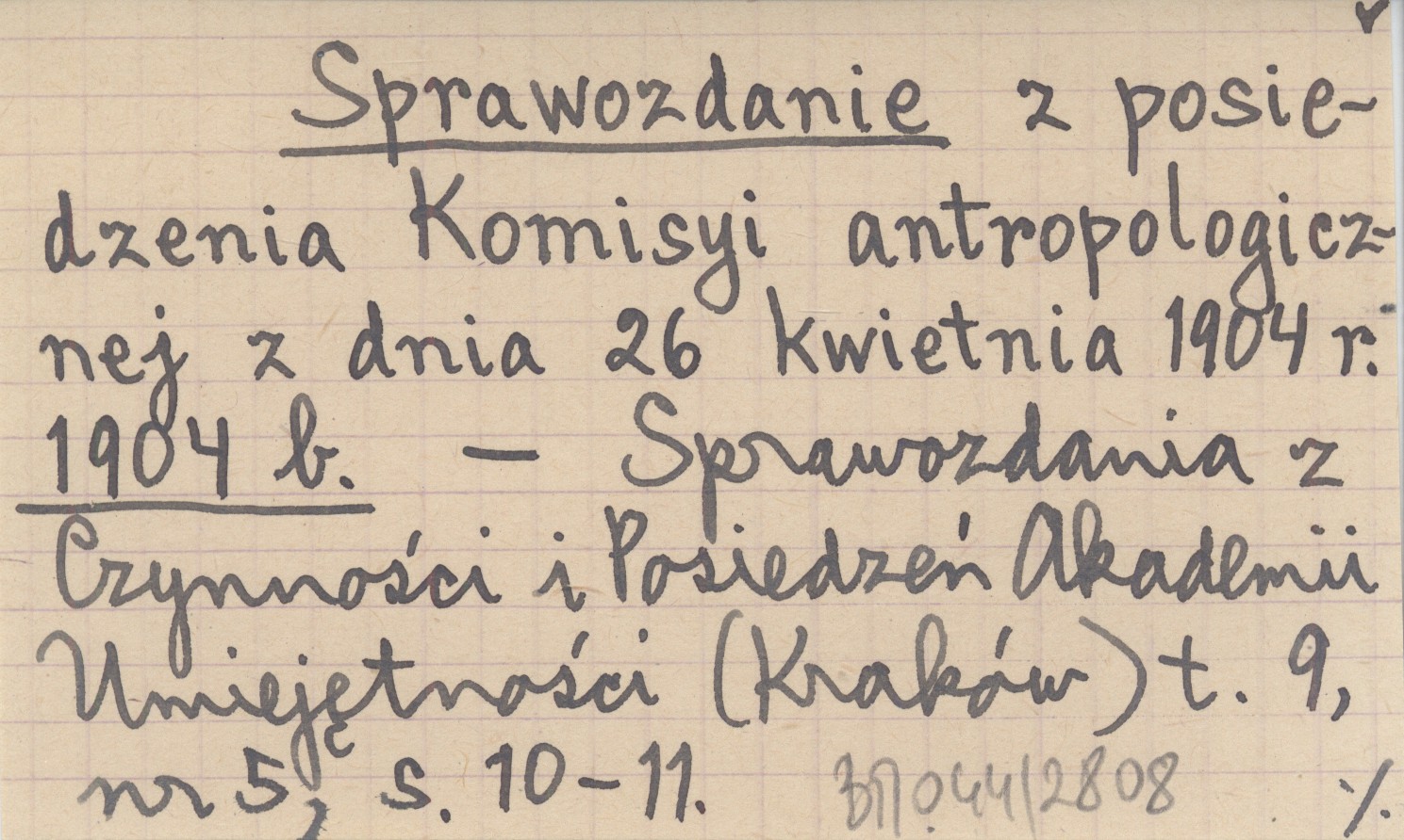 Sprawozdanie z posiedzenia Komisyi antropologicznej z dnia 26 kwietnia 1904 r. 1904 b
