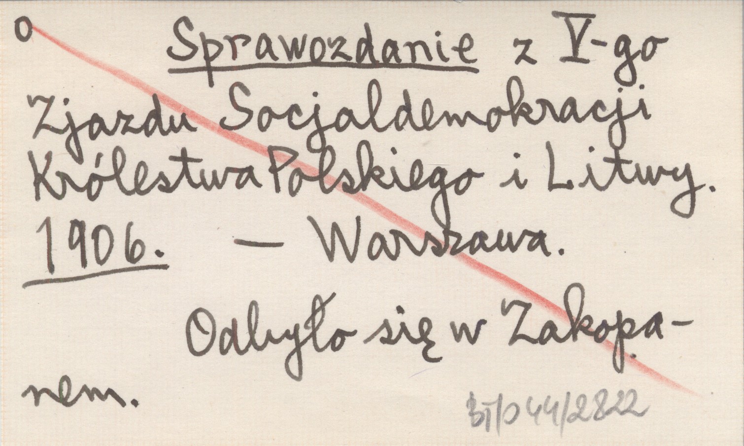 Sprawozdanie z V-go Zjazdu Socjaldemokracji Królestwa Polskiego i Litwy. 1906