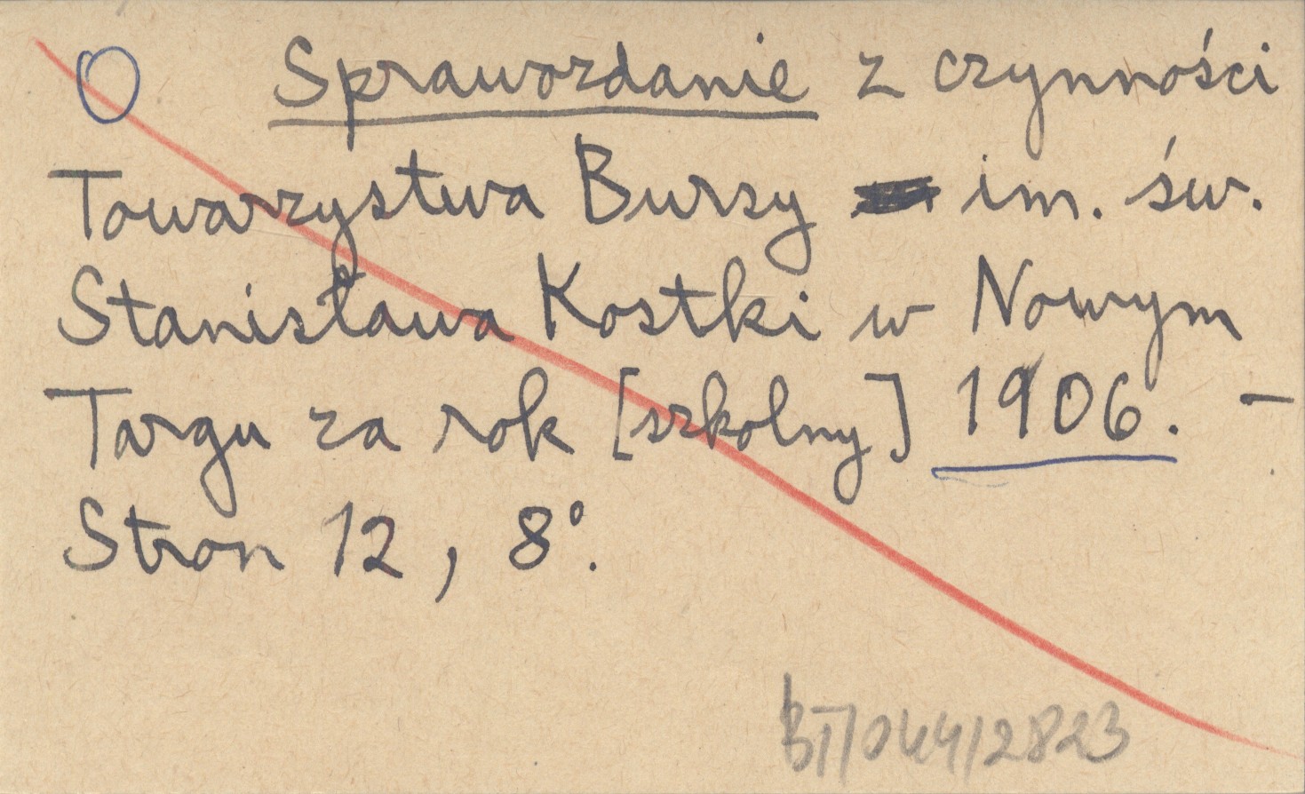 Sprawozdanie z czynności Towarzystwa Bursy im. św. Stanisława Kostki w Nowym Targu za rok [szkolny] 1906. 1906