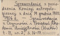 Sprawozdanie z posiedzenia Komisyi antropologicznej z dnia 19 grudnia 1905. 1906 a