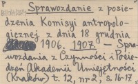 Sprawozdanie z posiedzenia Komisyi antropologicznej z dnia 18 grudnia 1906. 1907