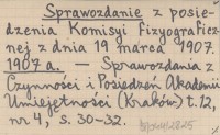Sprawozdanie z posiedzenia Komisyi fizyograficznej z dnia 19 marca 1907. 1907 a