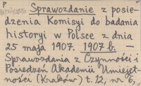 Sprawozdanie z posiedzenia Komisyi do badania historyi w Polsce z dnia 25 maja 1907. 1907 b