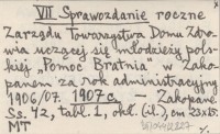 VII Sprawozdanie roczne Zarządu Towarzystwa Domu Zdrowia uczącej się młodzieży polskiej "Pomoc Bratnia" w Zakopanem za rok administracyjny 1906/07. 1907 c