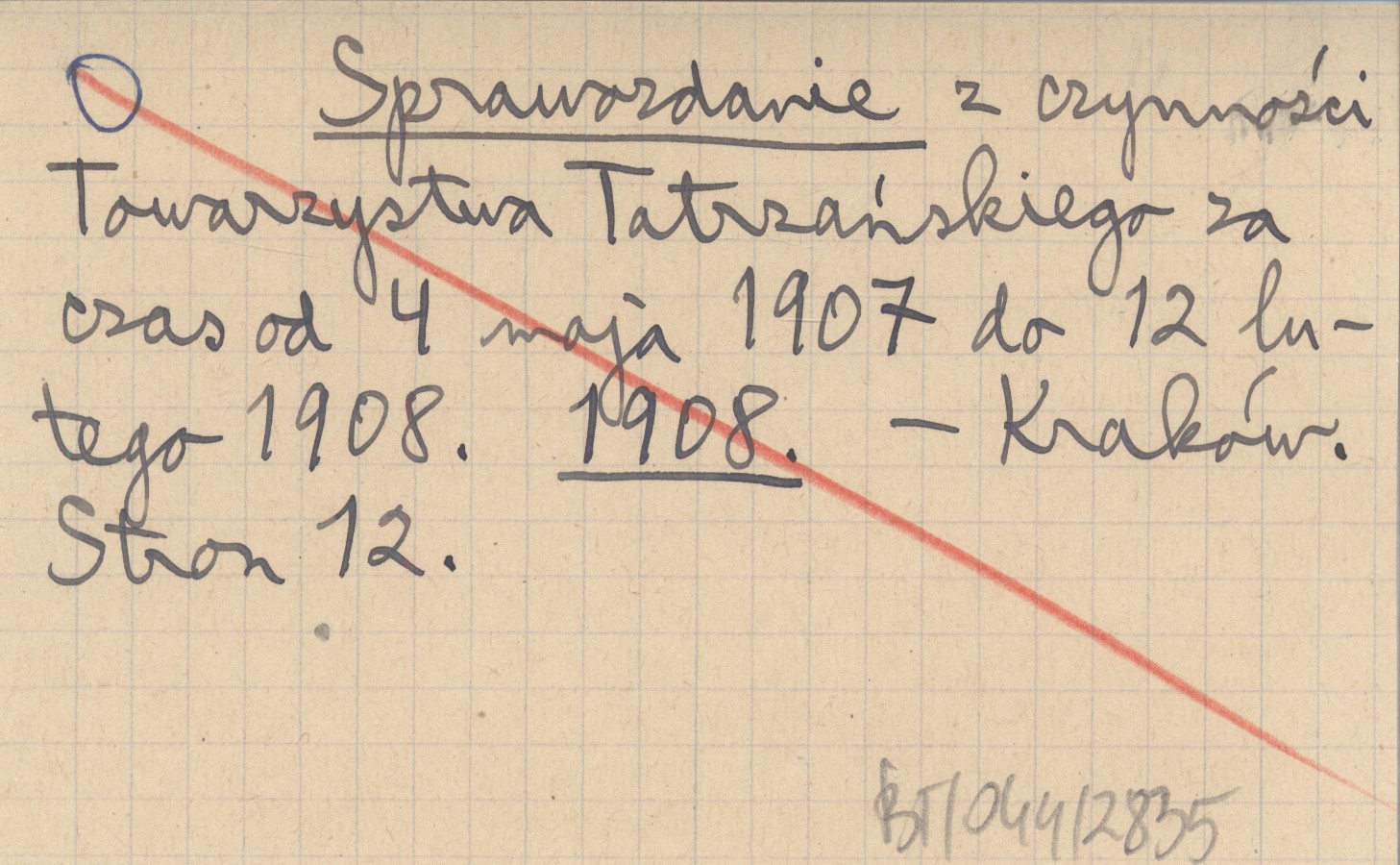 Sprawozdanie z czynności Towarzystwa Tatrzańskiego za czas od 4 maja 1907 do 12 lutego 1908. 1908
