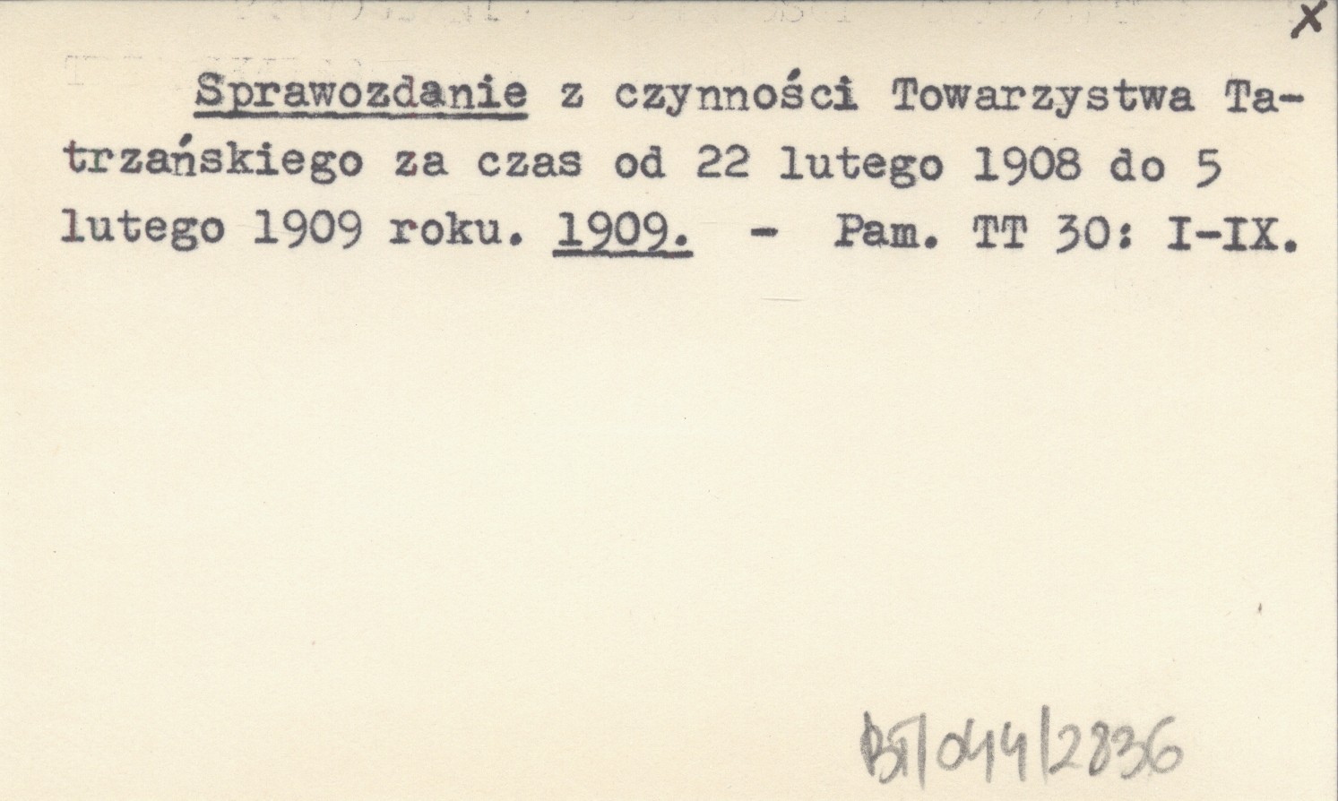 Sprawozdanie z czynności Towarzystwa Tatrzańskiego za czas od 22 lutego 1908 do 5 lutego 1909 roku. 1909