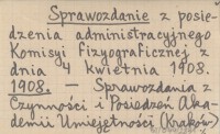 Sprawozdanie z posiedzenia administracyjnego Komisyi fizyograficznej z dnia 4 kwietnia 1908. 1908