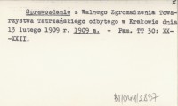 Sprawozdanie z Walnego Zgromadzenia Towarzystwa Tatrzańskiego odbytego w Krakowie dnia 13 lutego 1909 r. 1909 a