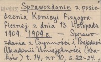 Sprawozdanie z posiedzenia Komisyi fizyograficznej z dnia 13 listopada 1909. 1909 c