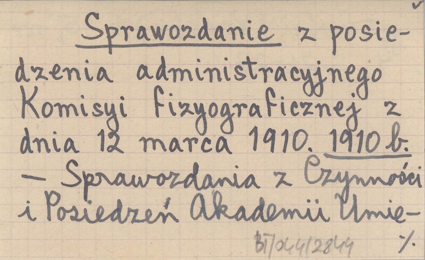 Sprawozdanie z posiedzenia administracyjnego Komisyi fizyograficznej z dnia 12 marca 1910. 1910 b