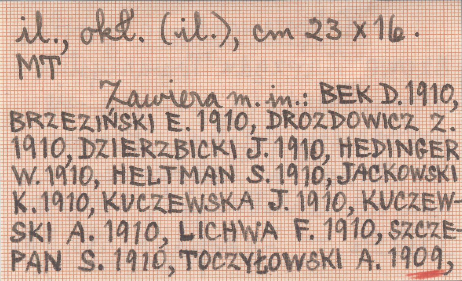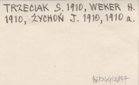 Zakopane , 78 s., il., okł. (il.), 23x16 cm. /zawiera m. in.: BEK D. 1910, BRZEZIŃSKI E. 1910, DROZDOWICZ Z. 1910, DZIERZBICKI J. 1910, HEDINGER W. 1910, HELTMAN S. 1910, JACKOWSKI K. 1910, KUCZEWSKA J. 1910, KUCZEWSKI A. 1910, LICHWA F. 1910, SZCZEPAN S. 1910, TOCZYŁOWSKI A. 1909, TRZECIAK S. 1910, WEKER H. 1910, ŻYCHOŃ J. 1910, 1910 a.