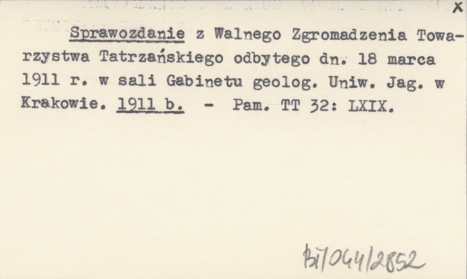 Sprawozdanie z Walnego Zgromadzenia Towarzystwa Tatrzańskiego odbytego dn. 18 marca 1911 r. w sali Gabinetu geolog. Uniw. Jag. w Krakowie. 1911 b