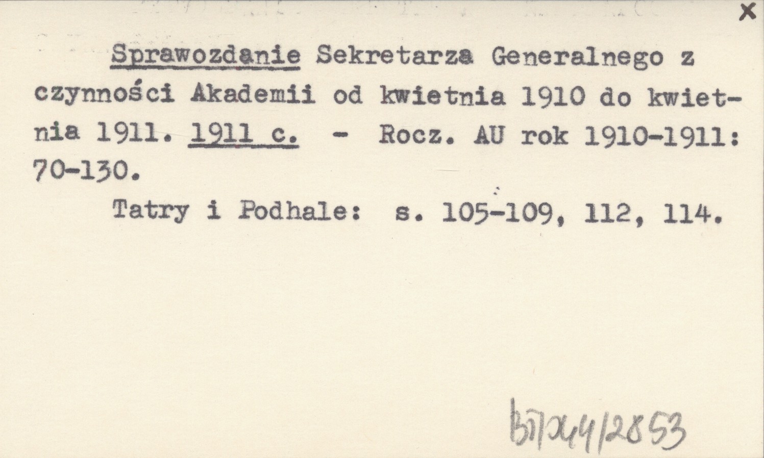 Sprawozdanie Sekretarza Generalnego z czynności Akademii od kwietnia 1910 do kwietnia 1911. 1911 c
