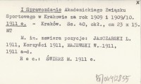 I Sprawozdanie Akademickiego Związku Sportowego w Krakowie za rok 1909 i 1909/10. 1911 e