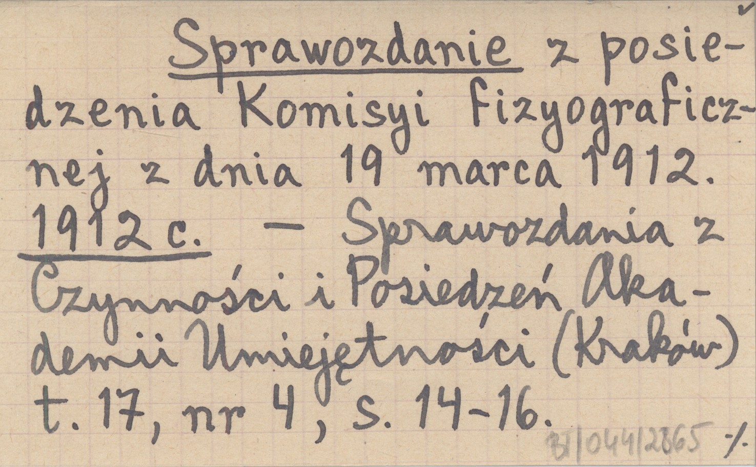 Sprawozdanie z posiedzenia Komisyi fizyograficznej z dnia 19 marca 1912. 1912 c