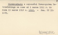 z czynności Towarzystwa Tatrzańskiego za czas od 1 marca 1911 r. do dnia 15 marca 1912 r.