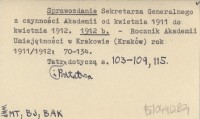 Sekretarza Generalnego z czynności Akademii od kwietnia 1911 do kwietnia 1912.