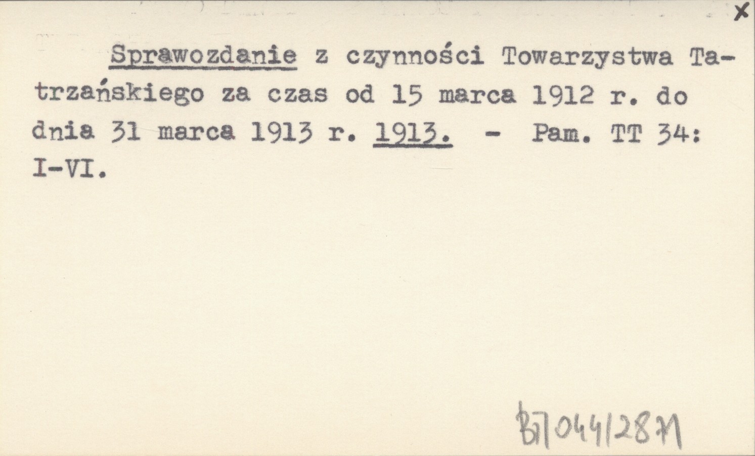 Sprawozdanie z czynności Towarzystwa Tatrzańskiego za czas od 15 marca 1912 r. do dnia 31 marca 1913 r. 1913
