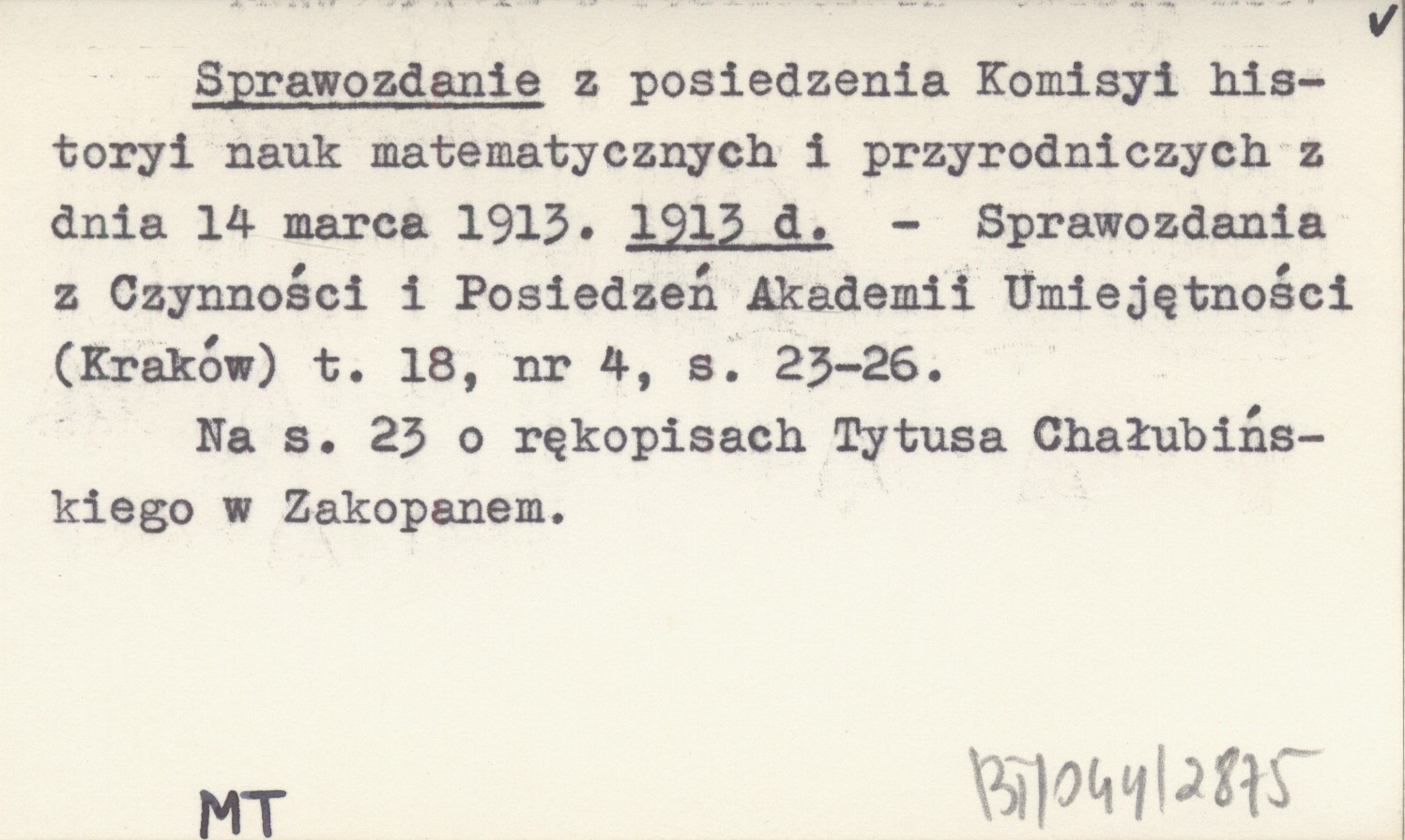 Sprawozdanie z posiedzenia Komisyi historyi nauk matematycznych i przyrodniczych z dnia 14 marca 1913. 1913 d