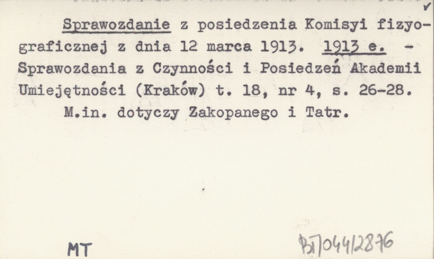Sprawozdania z Czynności i Posiedzeń Akademii Umiejętności (Kraków) , T. 18, nr 4: 26-28. M. in. dotyczy Zakopanego i Tatr.