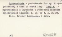Sprawozdanie z posiedzenia Komisyi fizyograficznej z dnia 12 marca 1913. 1913 e