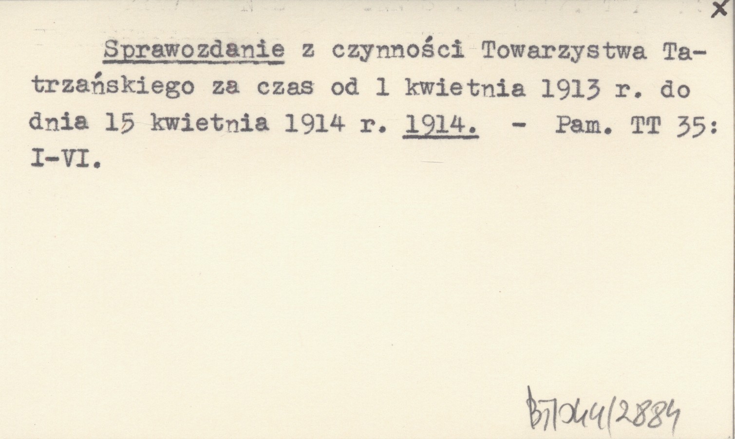 Sprawozdanie z czynności Towarzystwa Tatrzańskiego za okres od 1 kwietnia 1913 r. do dnia 15 kwietnia 1914 r. 1914
