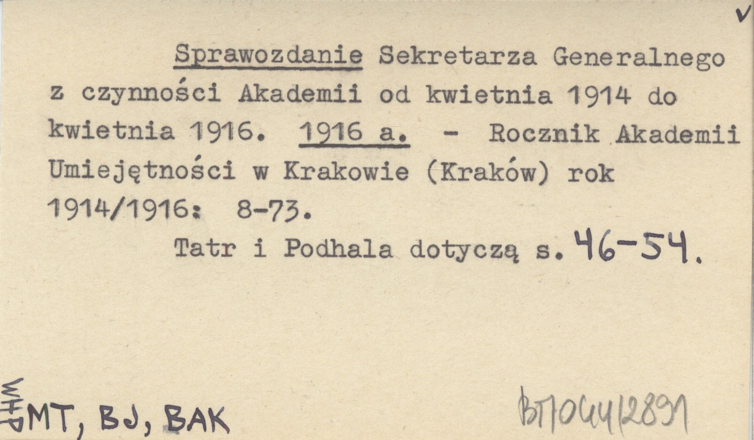Sprawozdanie Sekretarza Generalnego z czynności Akademii od kwietnia 1914 do kwietnia 1916. 1916 a