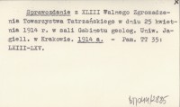 Sprawozdanie z XLIII Walnego Zgromadzenia Towarzystwa Tatrzańskiego w dniu 25 kwietnia 1914 r. w sali Gabinetu geolog. Uniw. Jagiell. w Krakowie. 1914 a