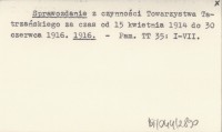 Sprawozdanie z czynności Towarzystwa Tatrzańskiego za czas od 15 kwietnia 1914 do 30 czerwca 1916. 1916