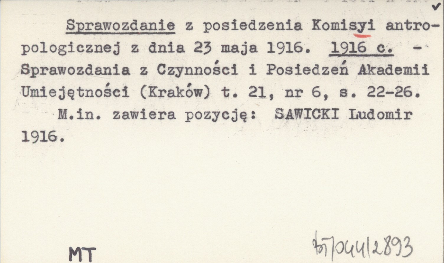 Sprawozdanie z posiedzenia Komisyi antropologicznej z dnia 23 maja 1916. 1916 c