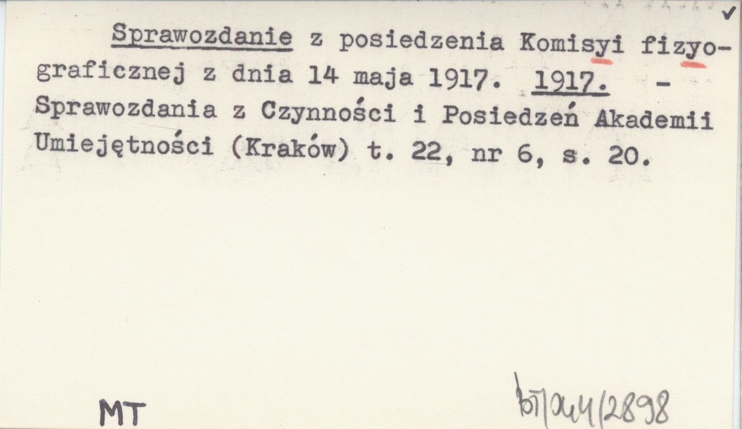 Sprawozdania z Czynności i Posiedzeń Akademii Umiejętności (Kraków) , T. 22, nr 6: 20.
