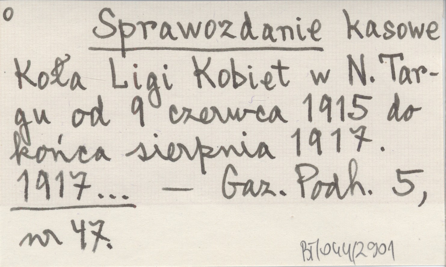 Sprawozdanie kasowe Koła Ligi Kobiet w N. Targu od 9 czerwca 1915 do końca sierpnia 1917. 1917...