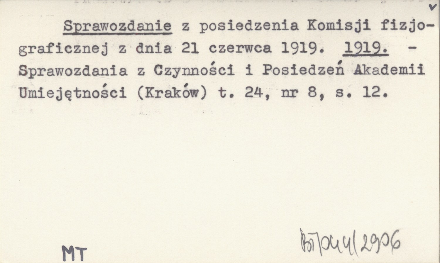Sprawozdanie z posiedzenia Komisji fizjograficznej z dnia 21 czerwca 1919. 1919
