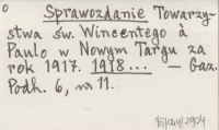 Sprawozdanie Towarzystwa św. Wincentego á Paulo w Nowym Targu za rok 1917. 1918...