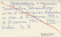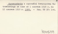 Sprawozdanie z czynności Towarzystwa Tatrzańskiego za czas od 1 czerwca 1918 r. do 15 czerwca 1919 r. 1920
