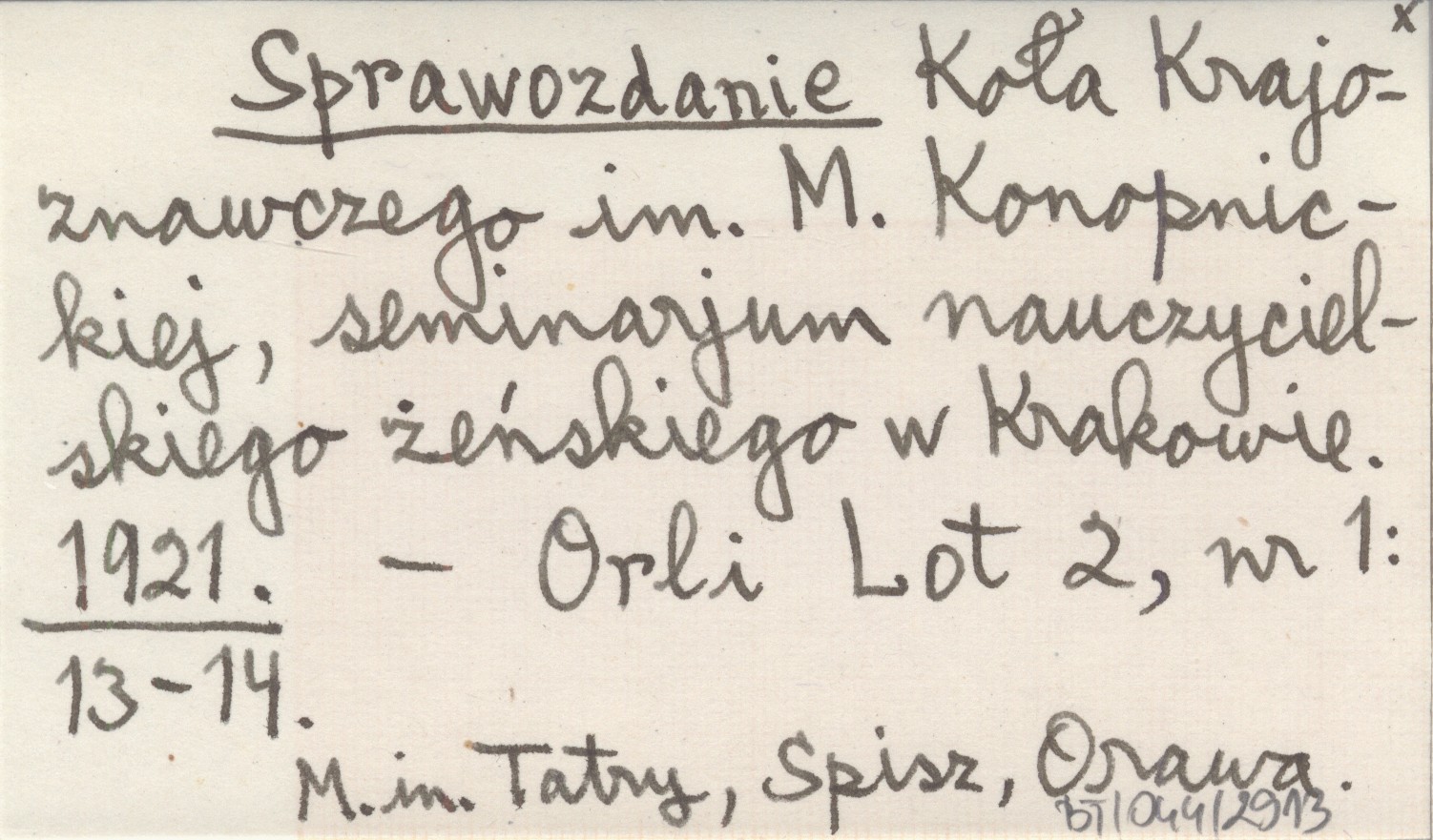 Orli Lot, 2, nr 1: 13-14. M. in. Tatry, Spisz, Orawa.