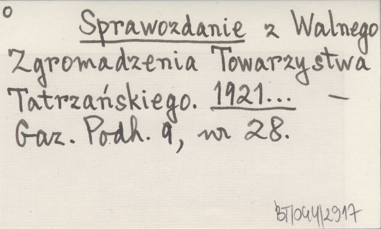Sprawozdanie z Walnego Zgromadzenia Towarzystwa Tatrzańskiego. 1921...